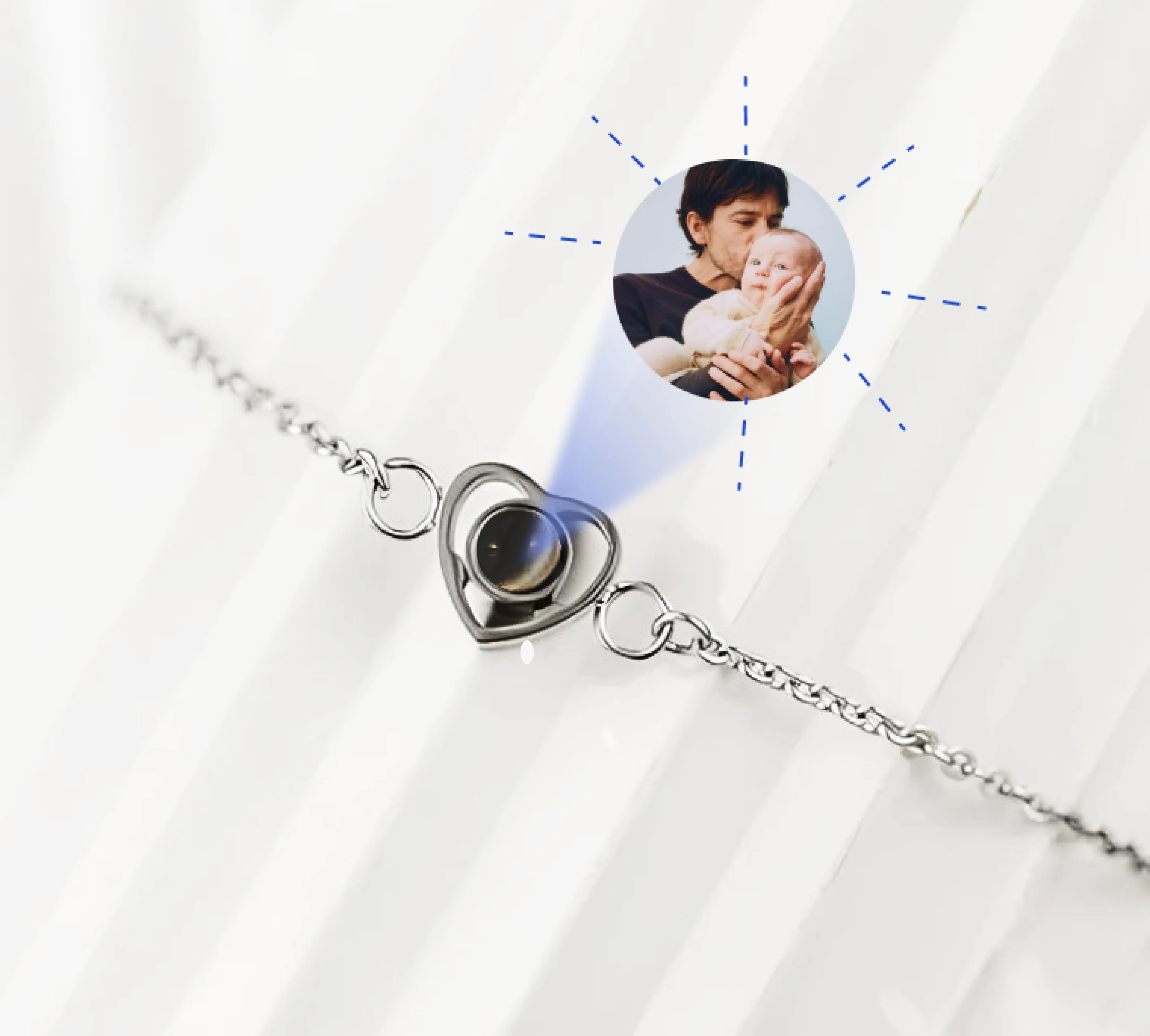 Этот браслет сделан из медицинской стали 316L. Это тот самый материал, который используют для хирургических инструментов: он не ржавеет, не темнеет и не оставляет следов на коже. Внутри сердца установлена маленькая линза с вашей фотографией. Это может быть снимок с друзьями, портрет ребенка или просто момент, который хочется помнить.