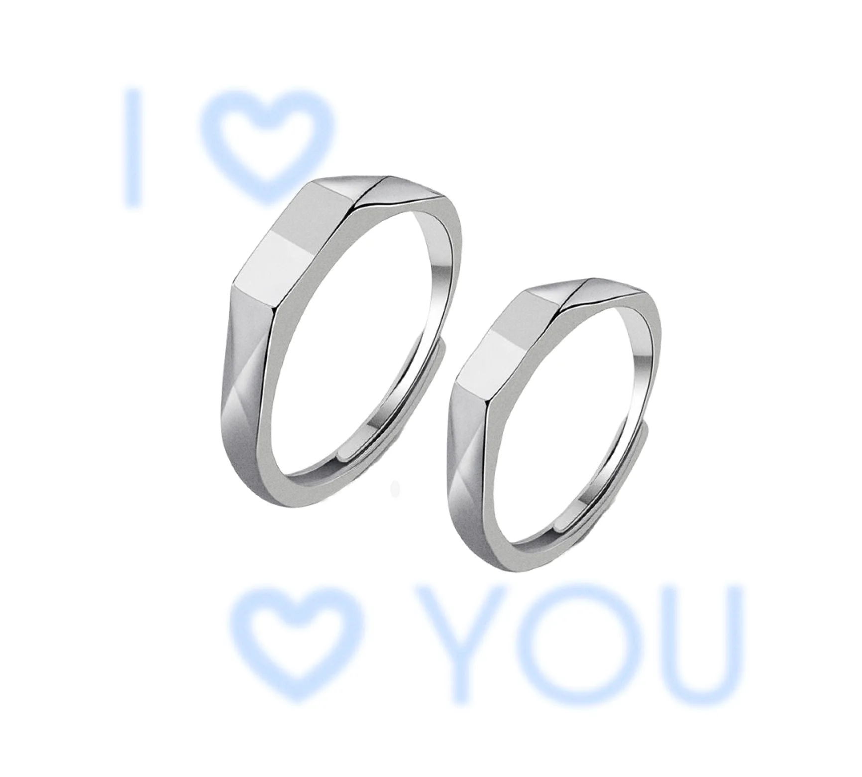 Серебряные парные кольца с эффектом световой проекции I Love You — оригинальный подарок для пары, романтическое украшение и символ отношений.